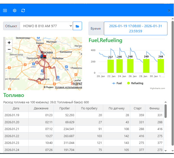 • Зона обслуживания – вся территория РФ; • Без ограничения по количеству пользователей; • Без ограничений по количеству объектов; • Система мониторинга доступна 24/7; • Хранение истории – 500 дней. Цена 420 руб/мес В системе реализован весь необходимый функционал для мониторинга и контроля за ТС, в т.ч. такие функции как: GPS/ГЛОНАСС мониторинг (местоположение, трек, стоянки, скорость, состояние зажигания (вкл/выкл), двигатель (заведен/заглушен), статус блокировки двигателя, если подключена функция); Автоматическая блокировка двигателя при нарушении заданных условий (например, выход из разрешенной зоны, превышение скорости и т.п.) Автоматическую блокировку двигателя можно применить к любому событию; Отправка уведомлений по событиям в Telegram, e-mail; Широкий перечень предустановленных отчетов; Построение графиков по любым параметрам; Ретрансляция данных в РНИС Москвы/МО, ОССИГ, Адвантум и т.п.; Геозоны и POI – количество не ограниченно; Система UniSky интегрирована с Системой управления таксопарком, компании Элемент-автопарк онлайн. Компания Элемент является официальным партнером ЯндексGo; Обучение и консультации по работе системы мониторинга; Контроль температуры в рефрижераторе; Примечание: Контроль параметров CAN и контроль расхода топлива - включено в тарифе Профи и Международный.